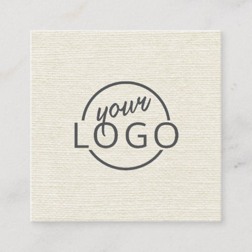 Modern minimal cream ivory linen custom logo square business card