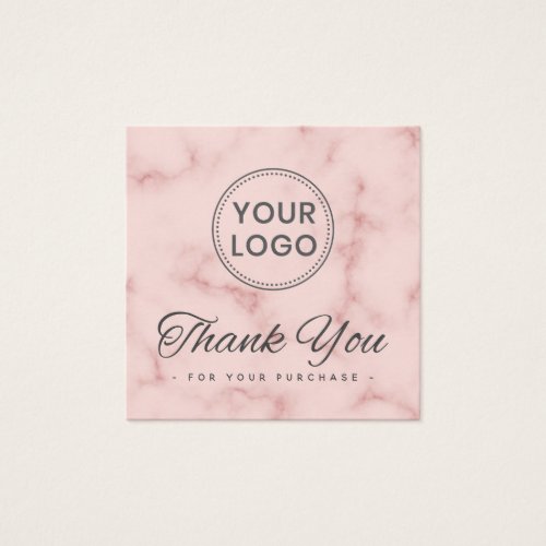 Elegant, blush pink thank you for your purchase or order square mini insert card with custom logo template and marble texture on the front. You can change fonts, resize and move elements with the design tool.
