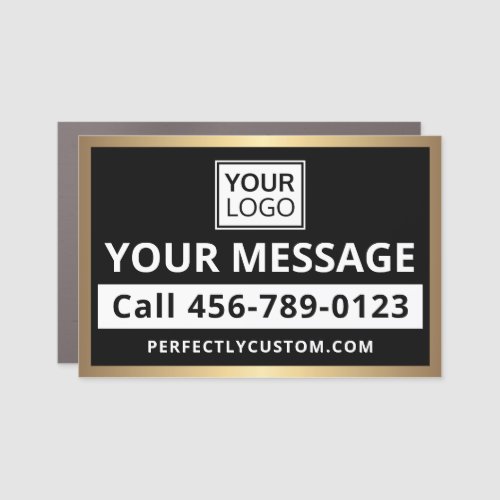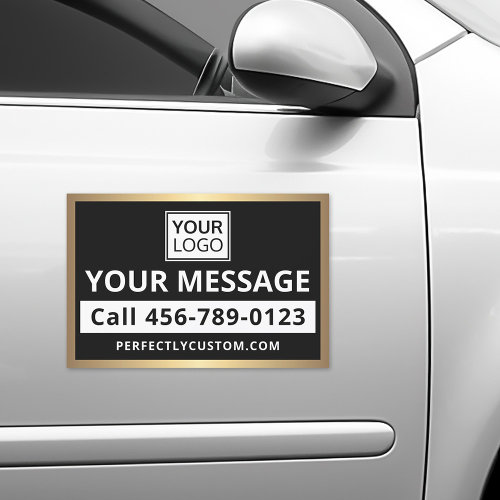 Customizable car magnet for promoting your business or service. Add your own logo and customize the template text. All colors except the golden gradient border are customizable and you can change fonts, move and resize elements with the design tool.