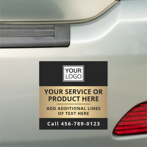 Black with a printed image golden gradient, square car magnet for promoting your business or service. Add your own logo and customize the template text. You can change fonts, move and resize text and elements with the design tool.