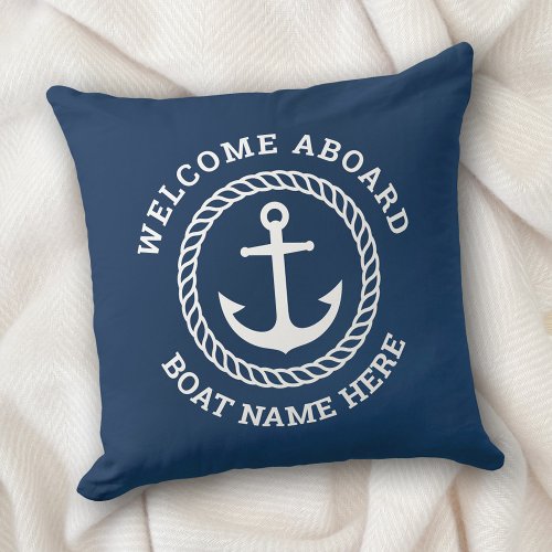 Custom boat name welcome aboard anchor and rope throw pillow