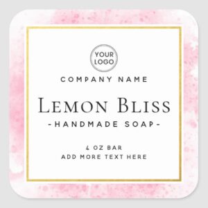 Pink watercolor and gold look border product label with cute whimsical script product name