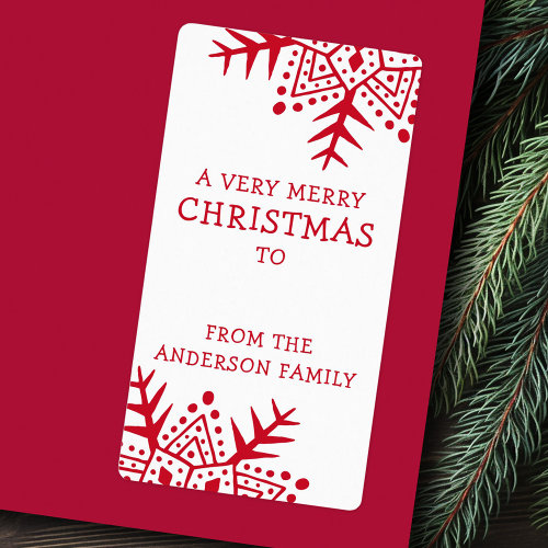 Whimsical folk art snowflake red white to from label